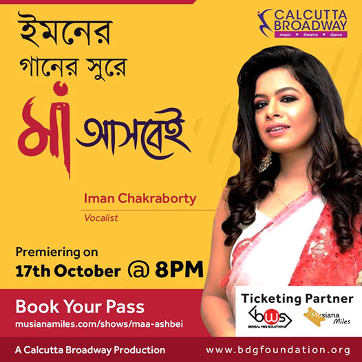• Popular vocalist Iman Chakraborty is part of Calcutta Broadway's unique show Maa Ashbei. If you wish to hear her sing, buy tickets of the online Charity show Maa Ashbei and support artistes and technicians during the difficult times of this pandemic.