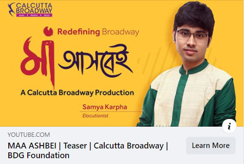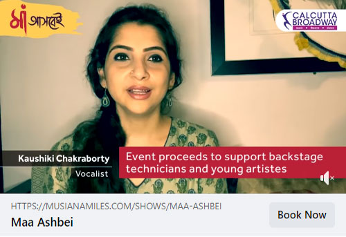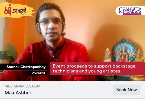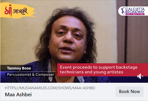 • Calcutta Broadway ushers in the power of Maa Durga through a unique online Broadway show 'Maa Ashbei.' Listen to well-known percussionist and composer Tanmoy Bose as he shares how Calcutta Broadway has come forward to support backstage technicians and young artistes who are living in great difficulty due to the Pandemic. All proceeds from Maa Ashbei will go to support these people. So, come to their aid and get the tickets of Maa Ashbei!